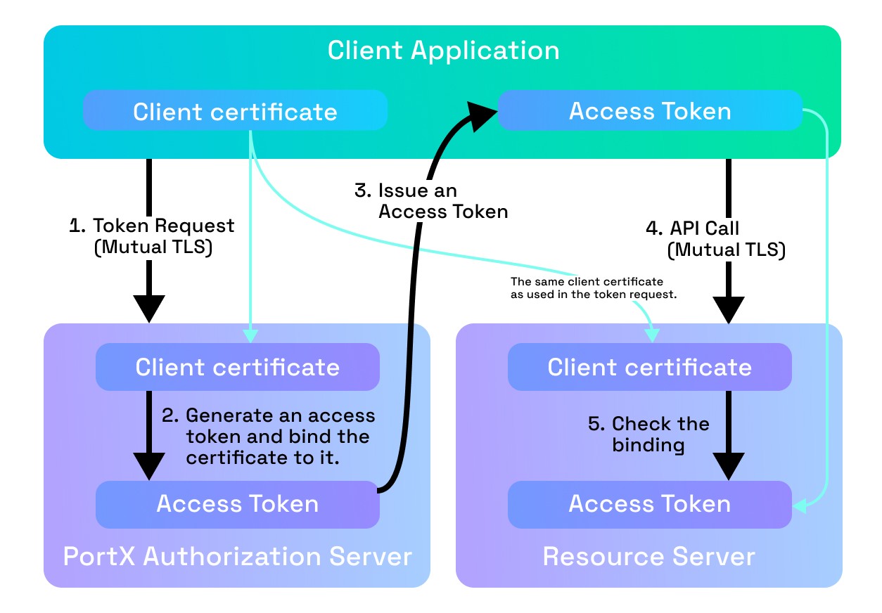 Create the access token from the mTLS credential with a simple combination of requests to the PortX Authorization Server.