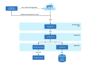 Here, the GUID is passed directly to MortgageHippo to initiate the application without ever obtaining access to the Account Number. From there, Mortgage Hippo uses the GUID to communicate directly through the API layers to obtain the required user information to complete the application.