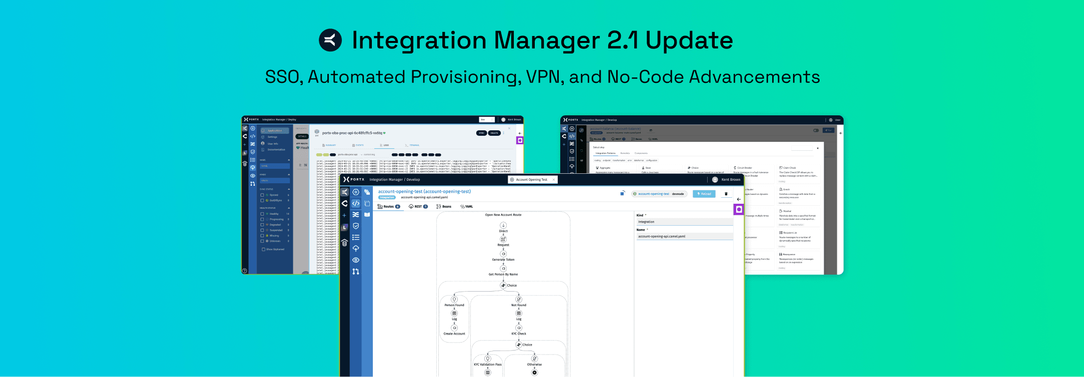 Integration Manager 2.1 is built on a cloud-native, enterprise-quality foundation tailored to meet the specific needs of banks and credit unions, which are typically smaller organizations compared to the target audience of many of our competitors. This update further emphasizes providing powerful, industrial-strength infrastructure with user-friendly tooling, making advanced technologies approachable with no provisioning required by the FI.