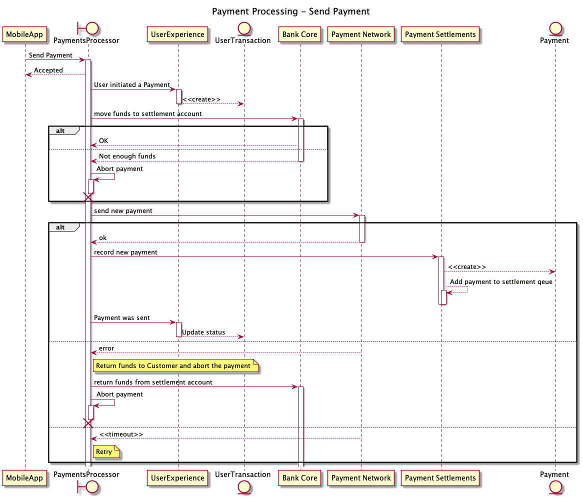 We began by summarizing the high-level steps of the “send payment” use case: