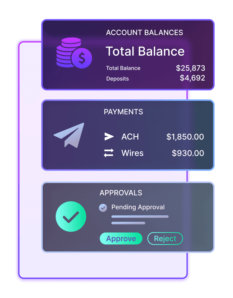 Many commercial customers manage cash flow, approvals, and vendors inside an ERP or accounting platform. Embedded banking brings core services directly into that environment.